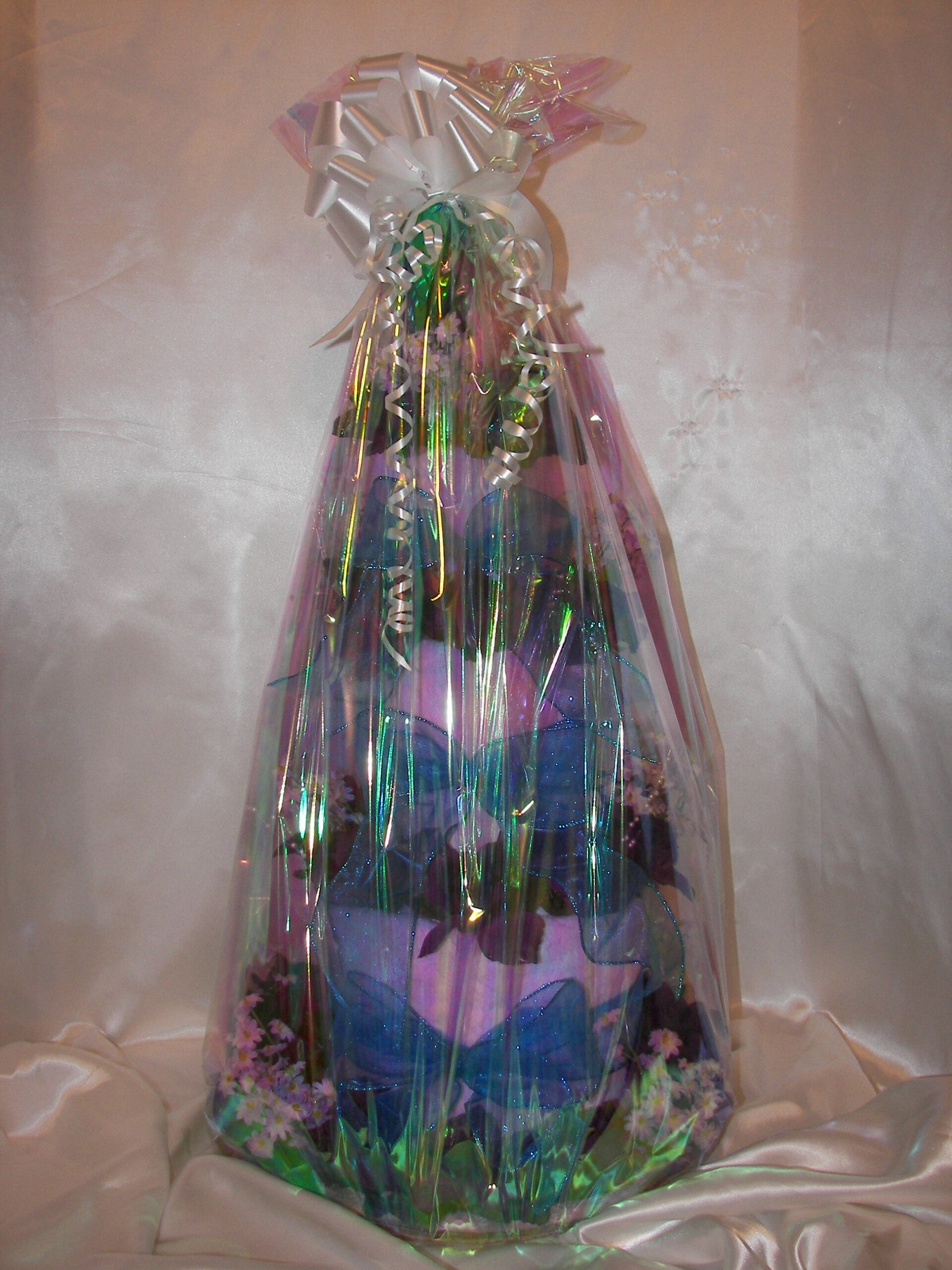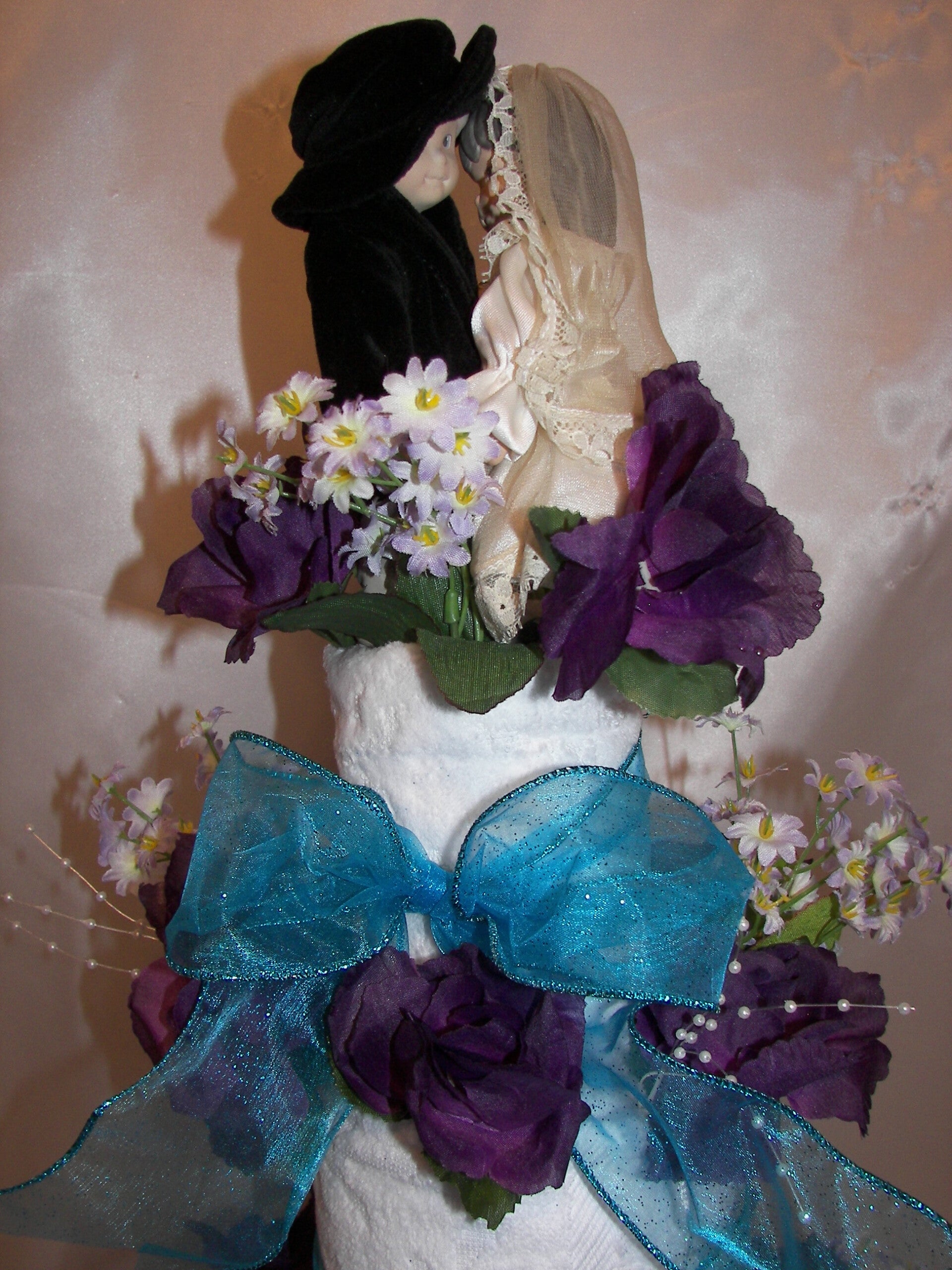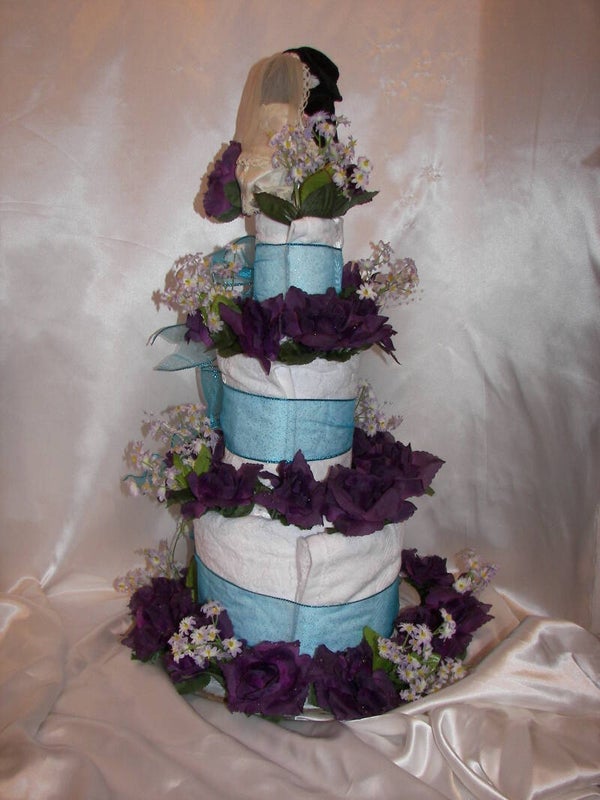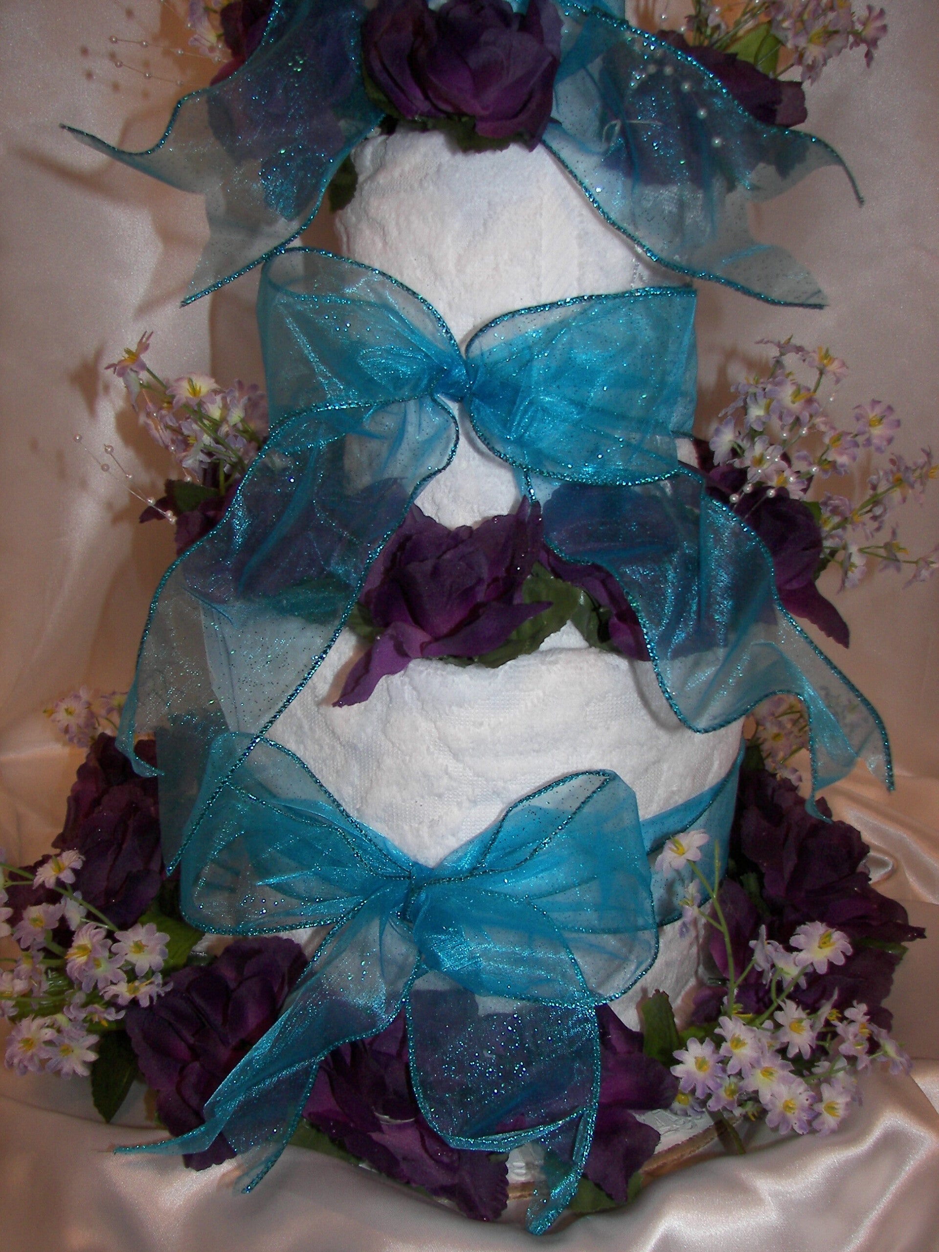 Purple Wedding Towel Cake 4 Towels, 4 Hand Towels, 4 Wash Cloths, Collectable , and Flowers.