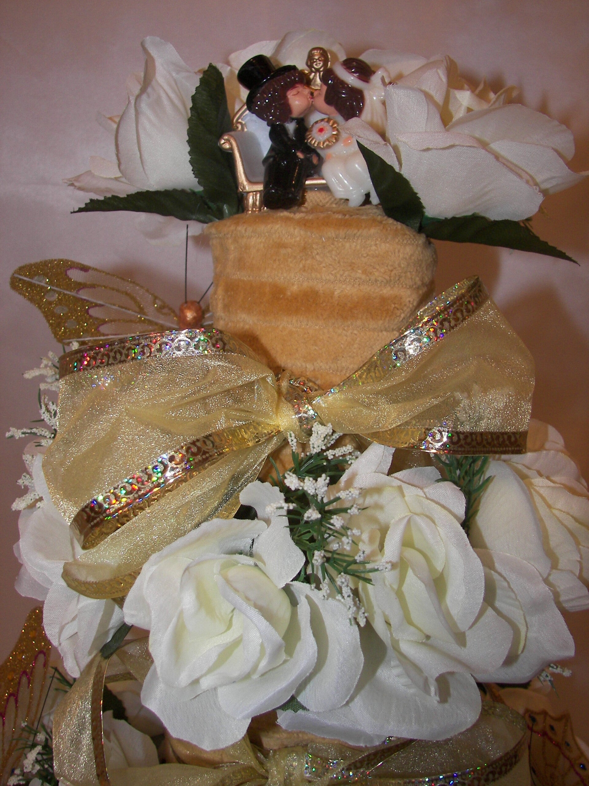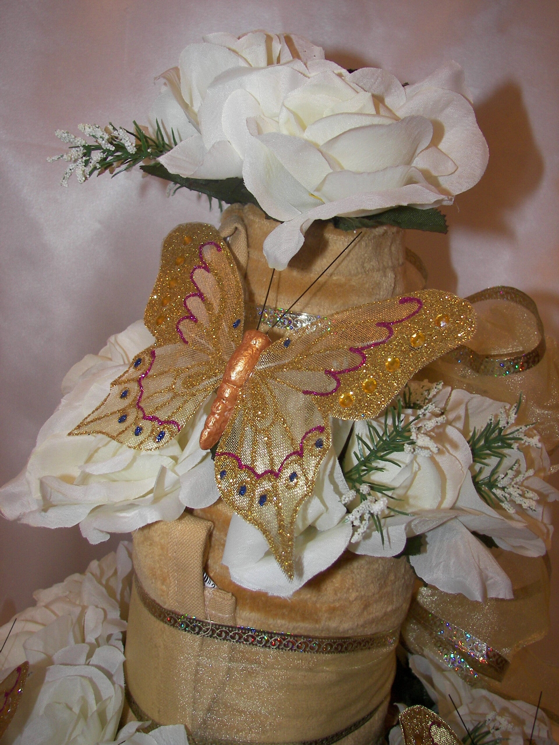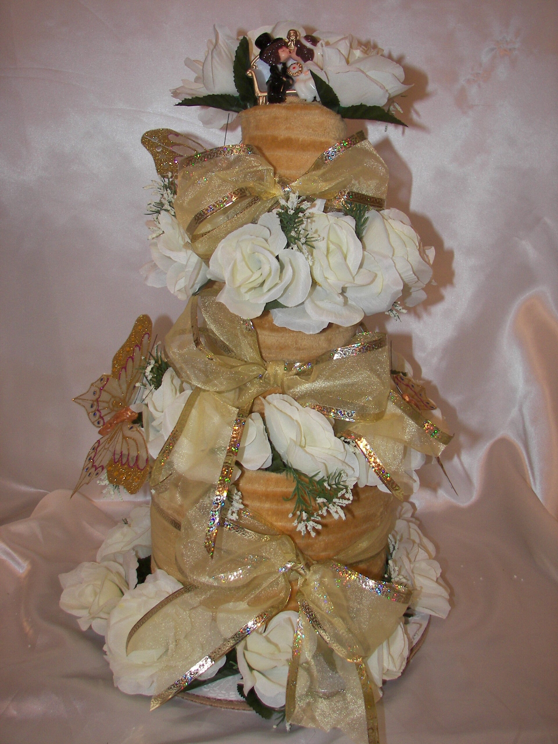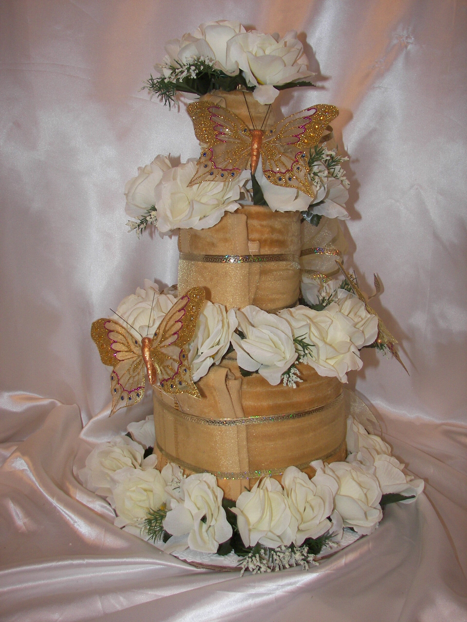 Gold Wedding Towel Cake 4 Towels, 4 Hand Towels, 4 Wash Cloths, Collectable, Flowers, gift card and wrapping
