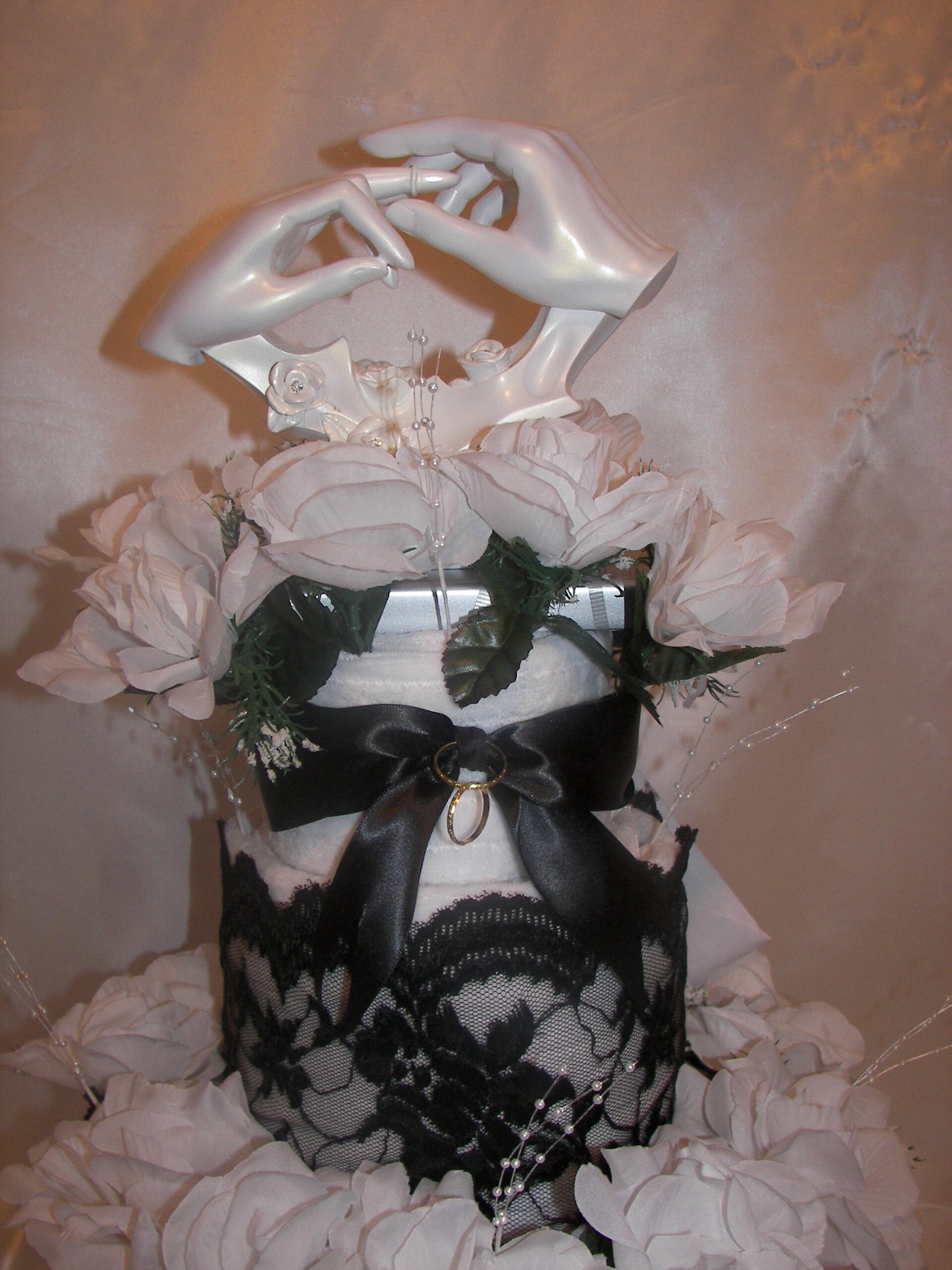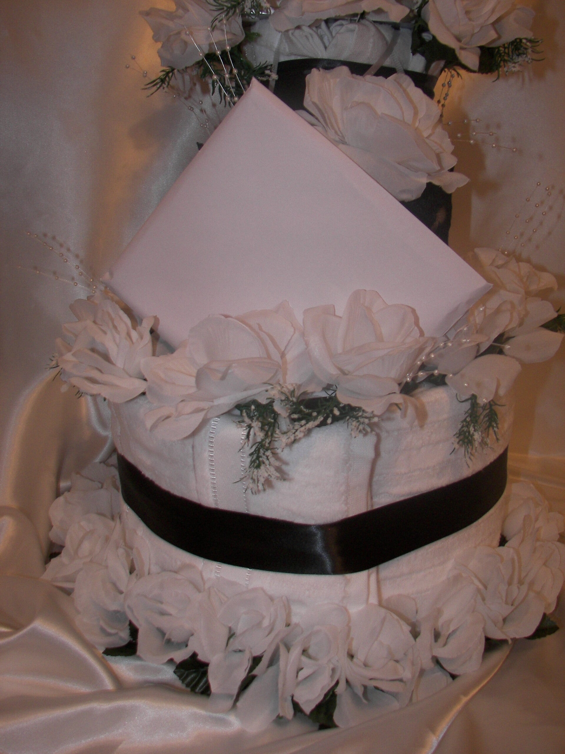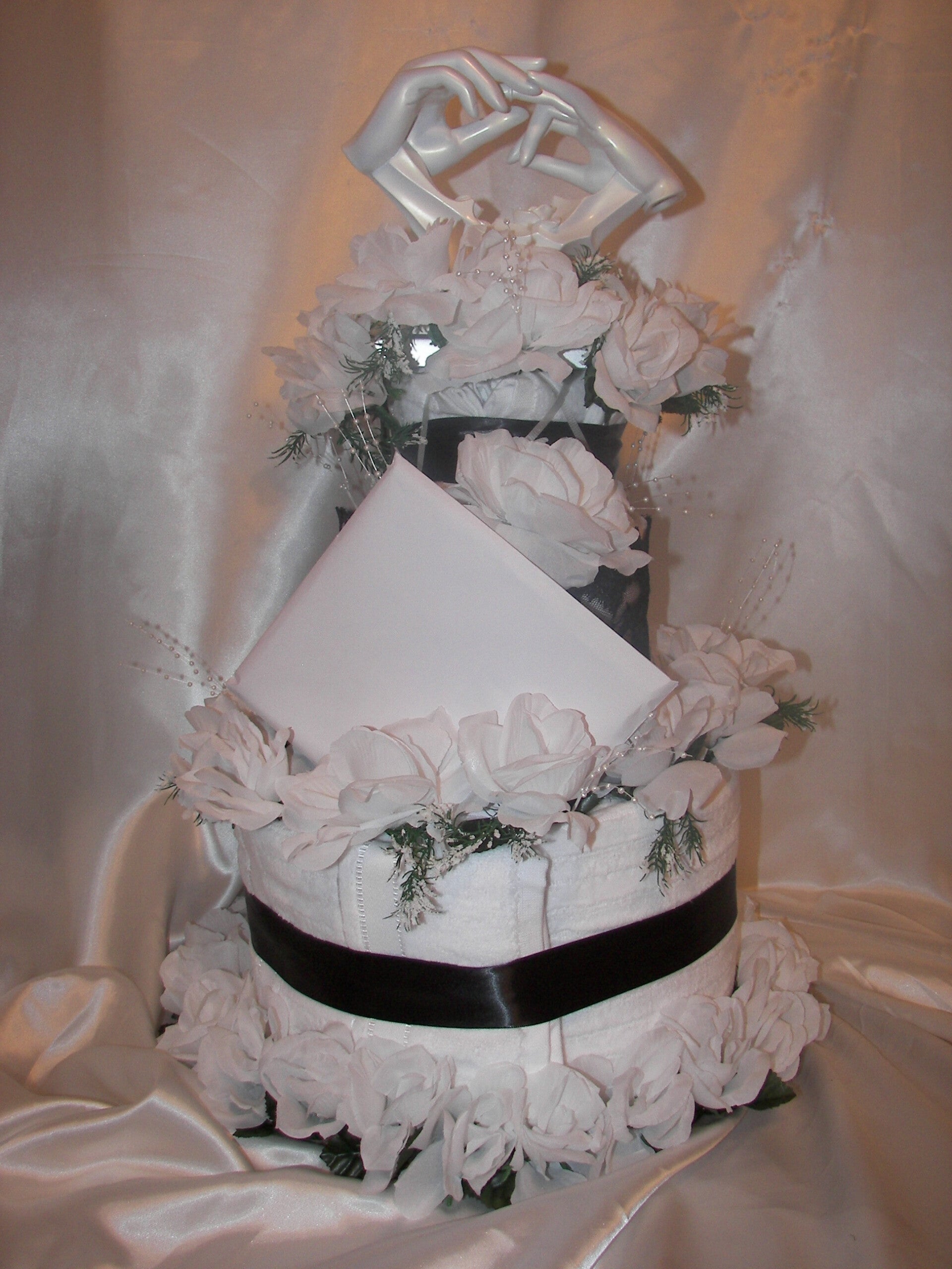 Black and White Wedding Towel Cake 4 Towels, 4 Hand Towels, 4 Wash Cloths, Collectable, Flowers, gift card and wrapping