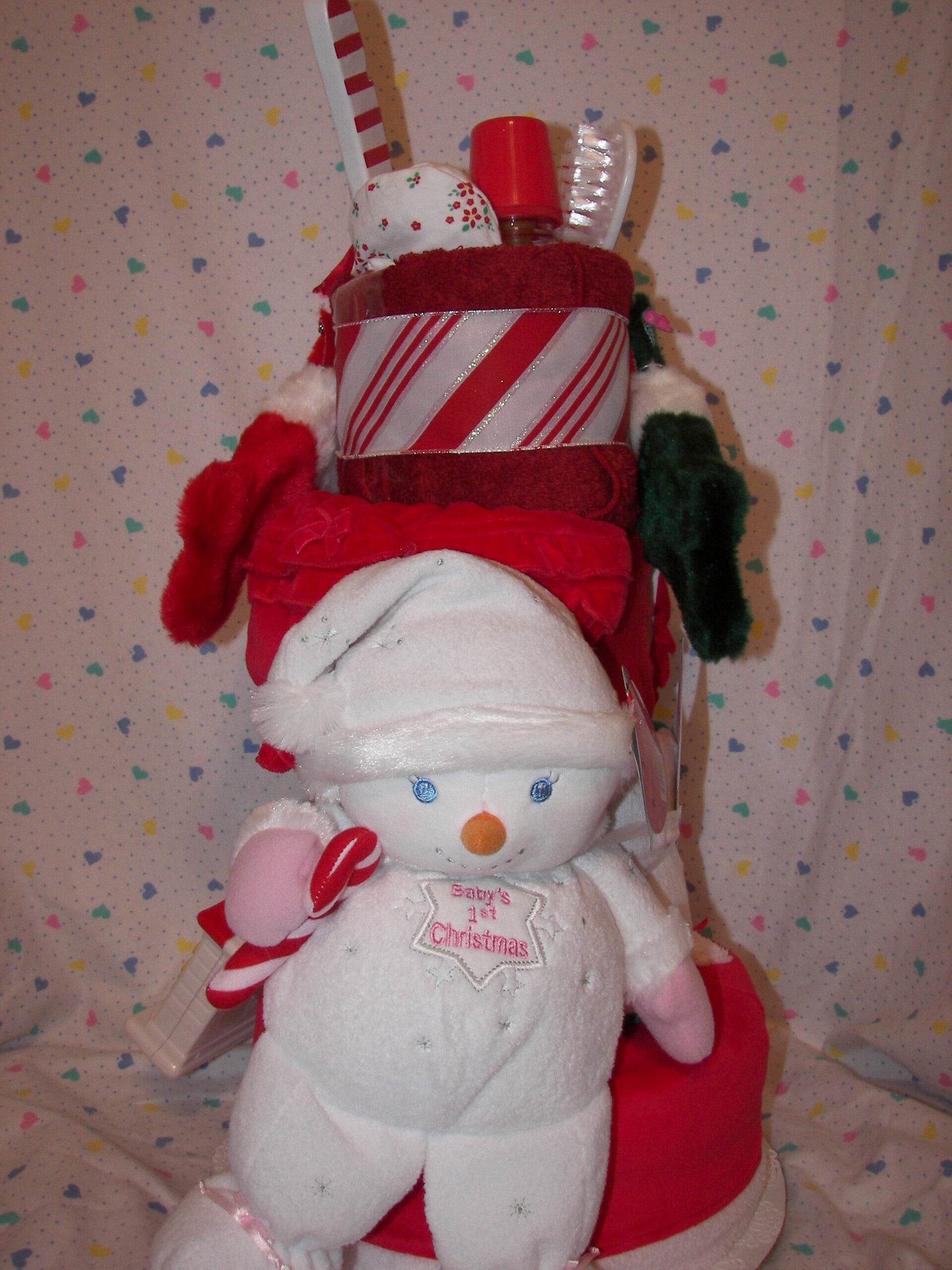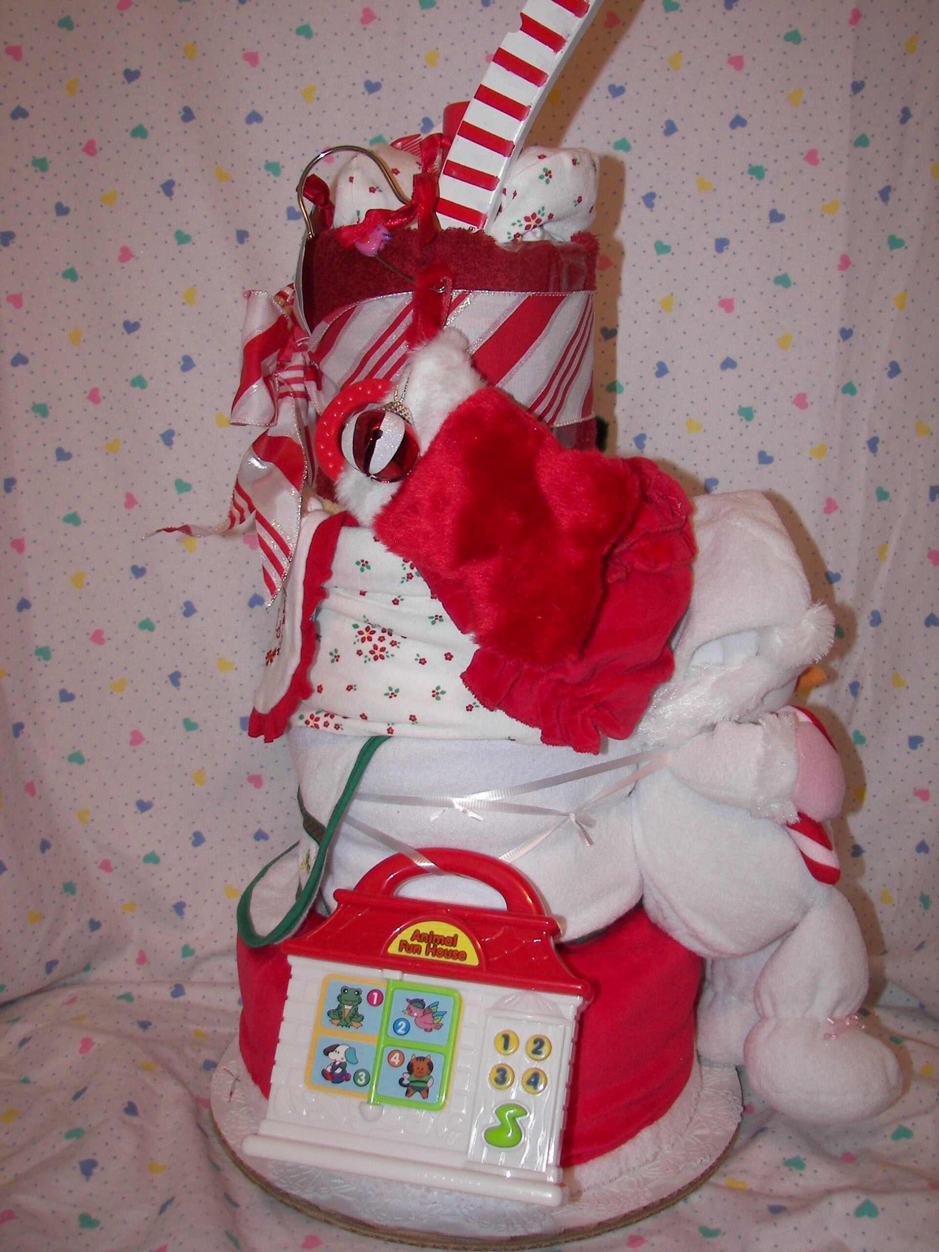 Christmas Baby Diaper CakeDiapers, bib, rattle, ect.