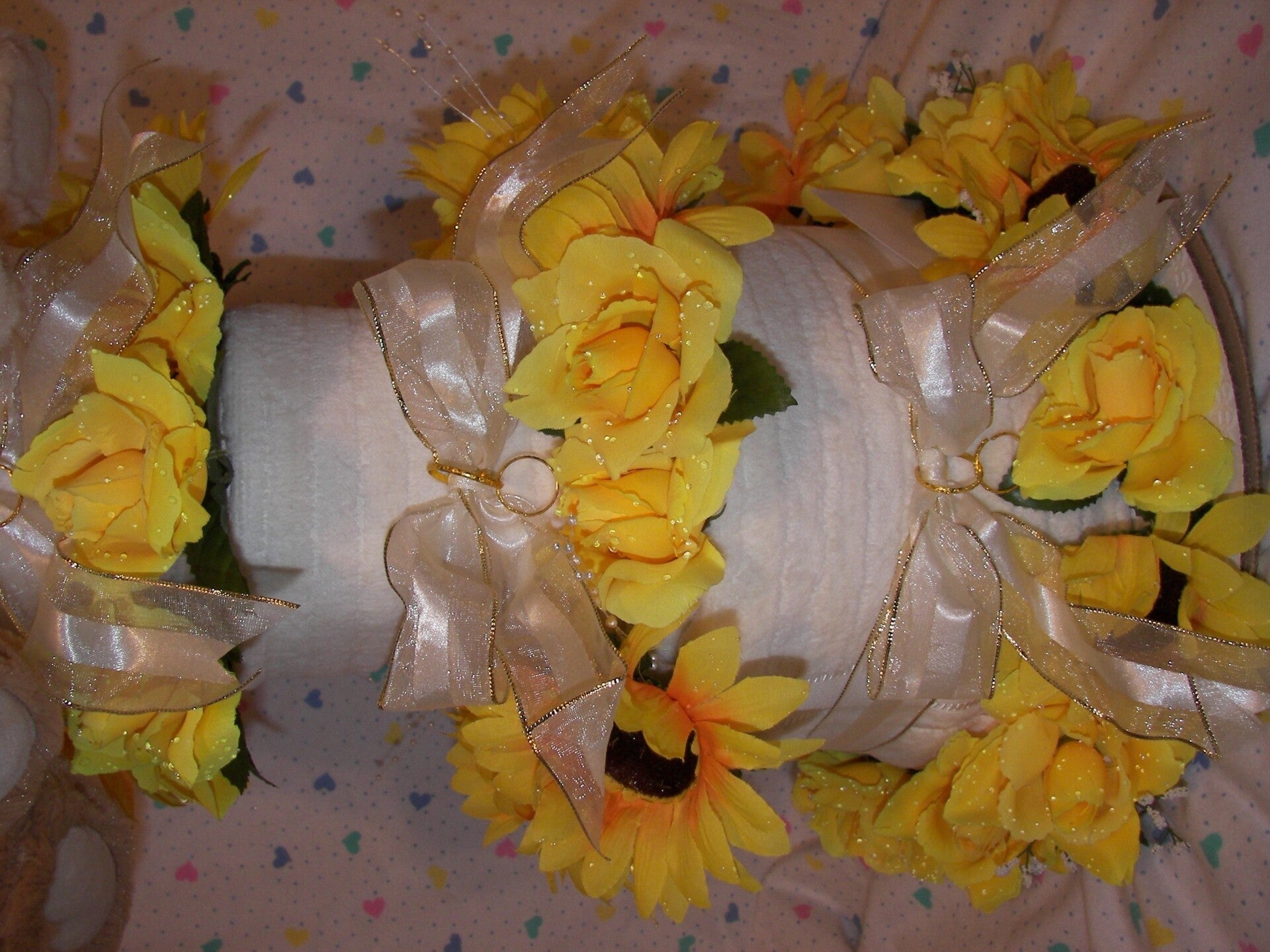 Tellow and White Wedding Towel Cake 4 Towels, 4 Hand Towels, 4 Wash Cloths, Collectable Bear, Flowers, gift card and wrapping