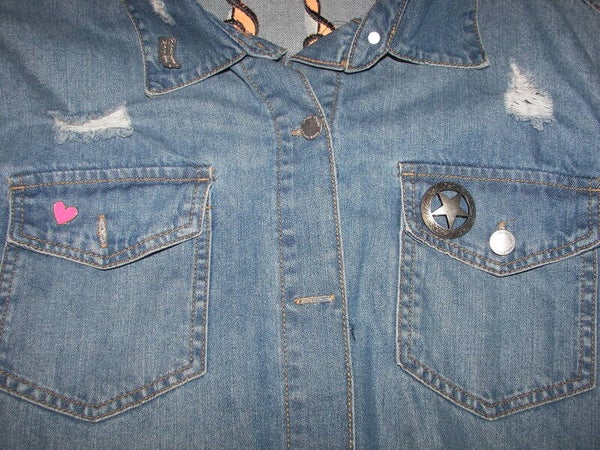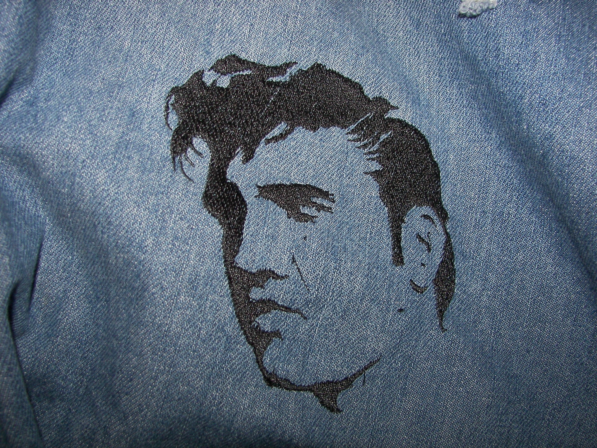 Elvis Presley on the back of Jean Jacket. Very long can be used as a dress.