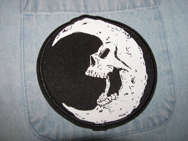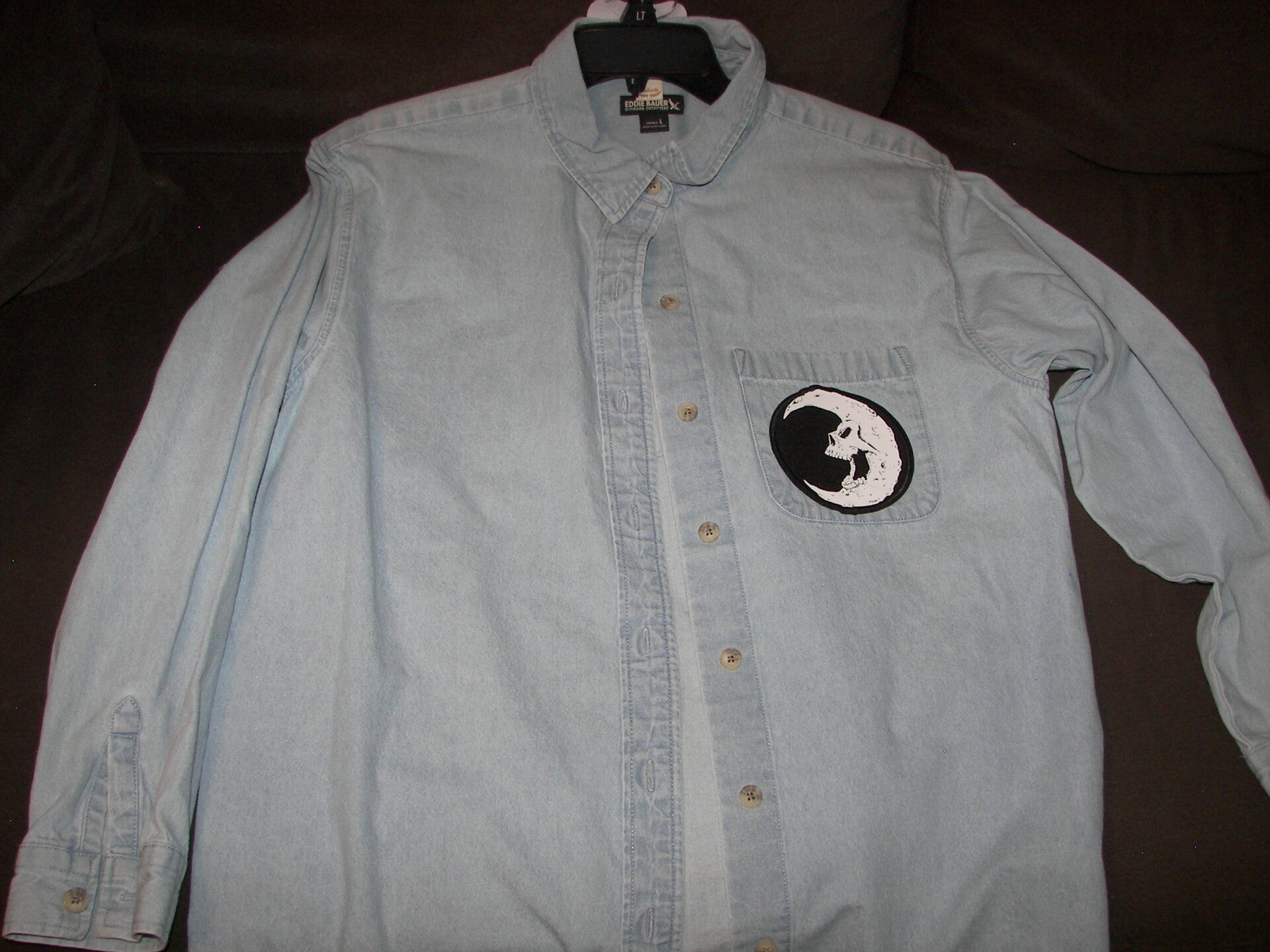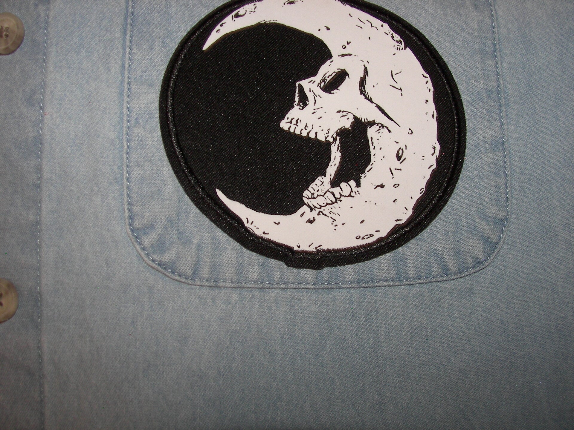 Motorcycle Scull on the back of jean shirt. Size: L