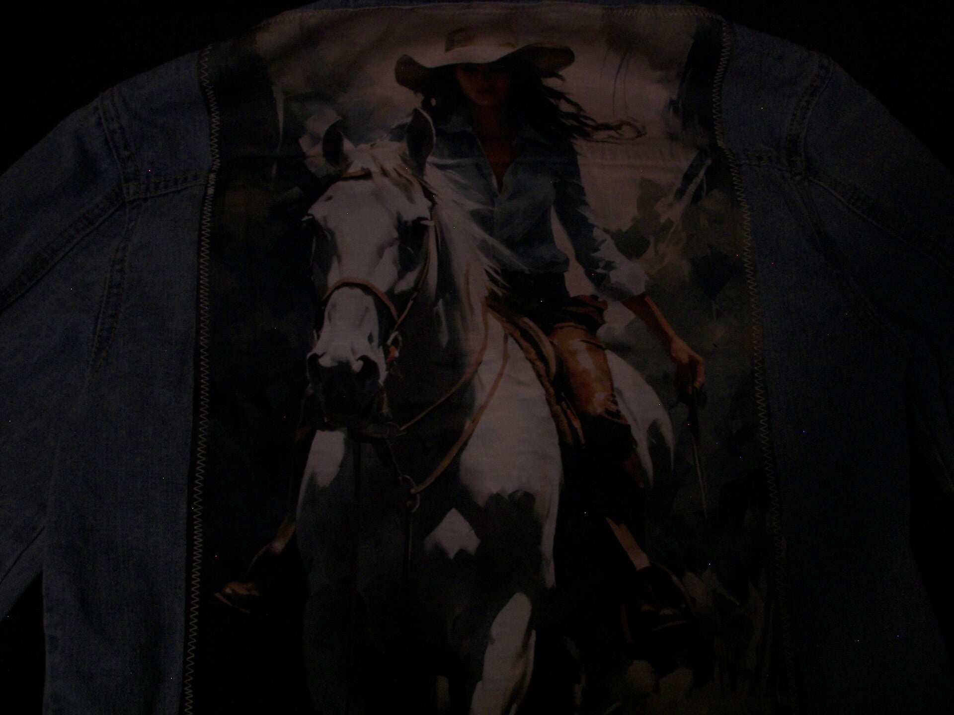 Cowgirl On Horse on Jean Jacket