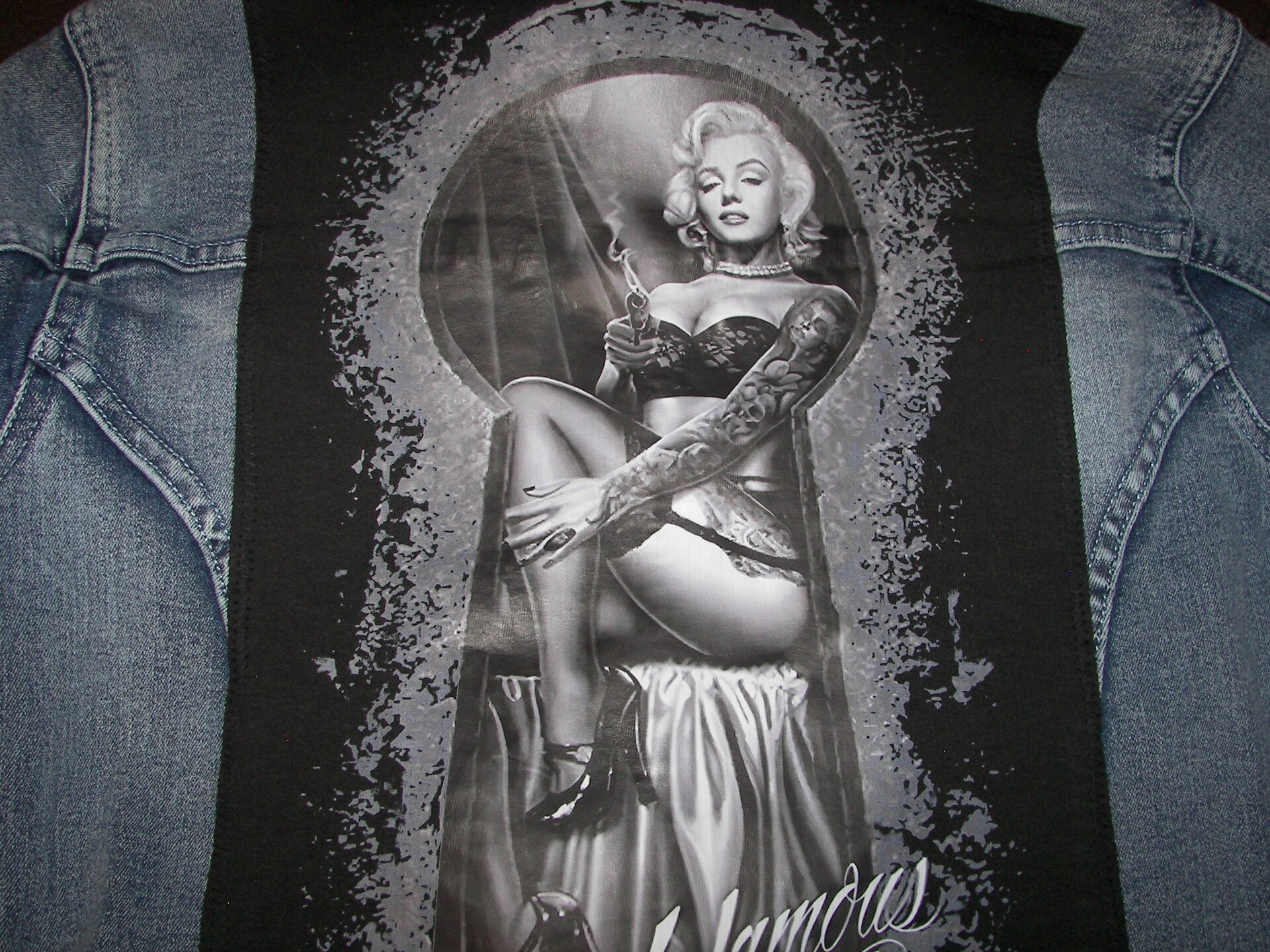 Marilyn Monroe Keyhole on back of Jean Jacket. Size: S