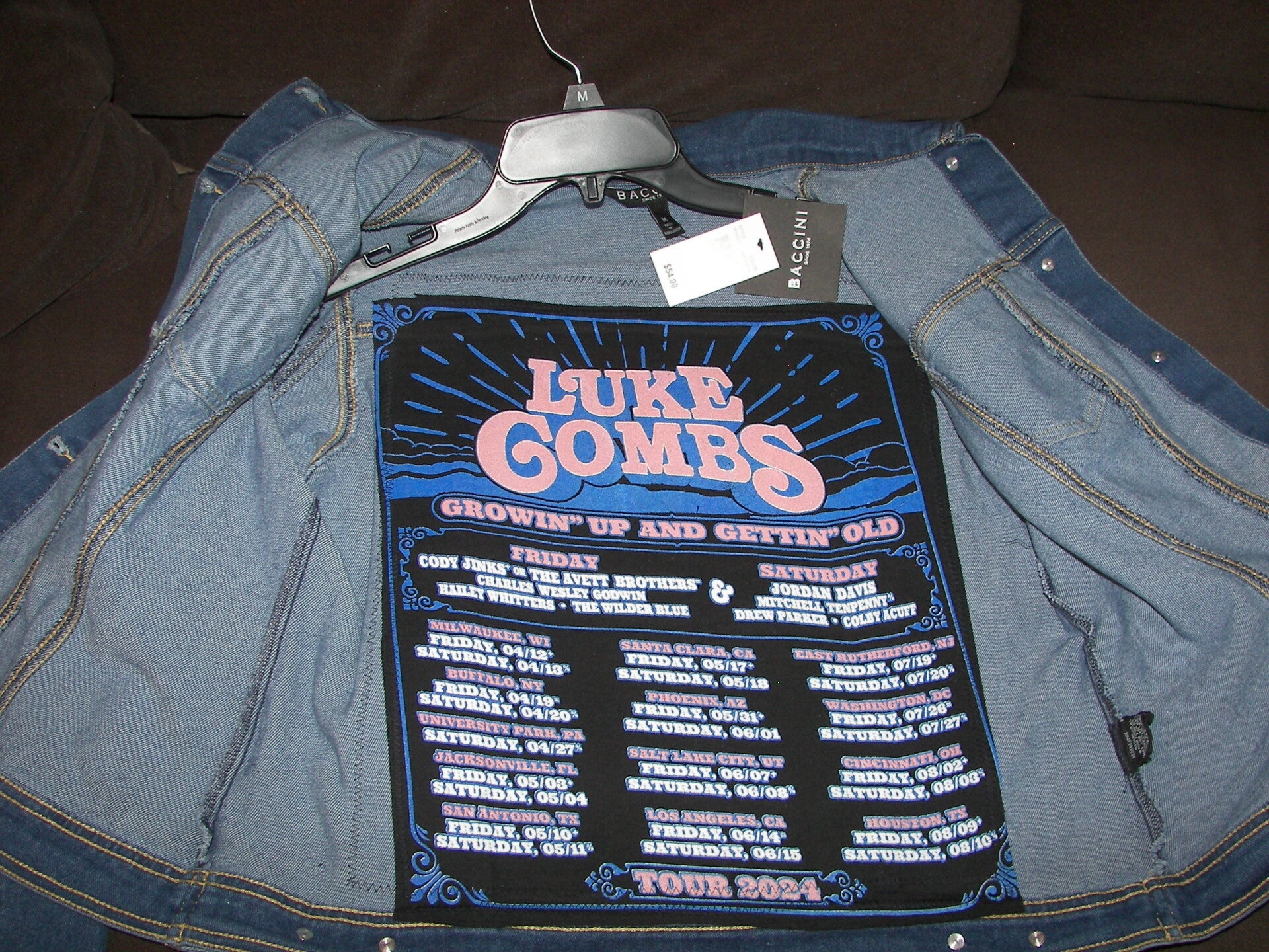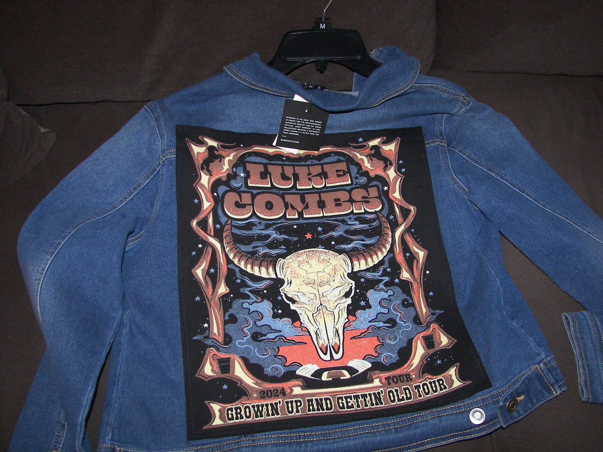 Luke Combs on the back of a jean jacket. Size: M
