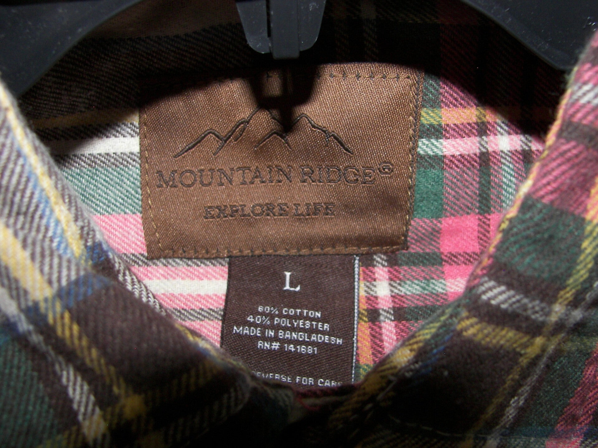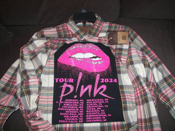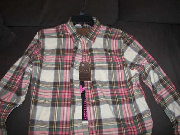 Pink on the back of Flannel. Size: L