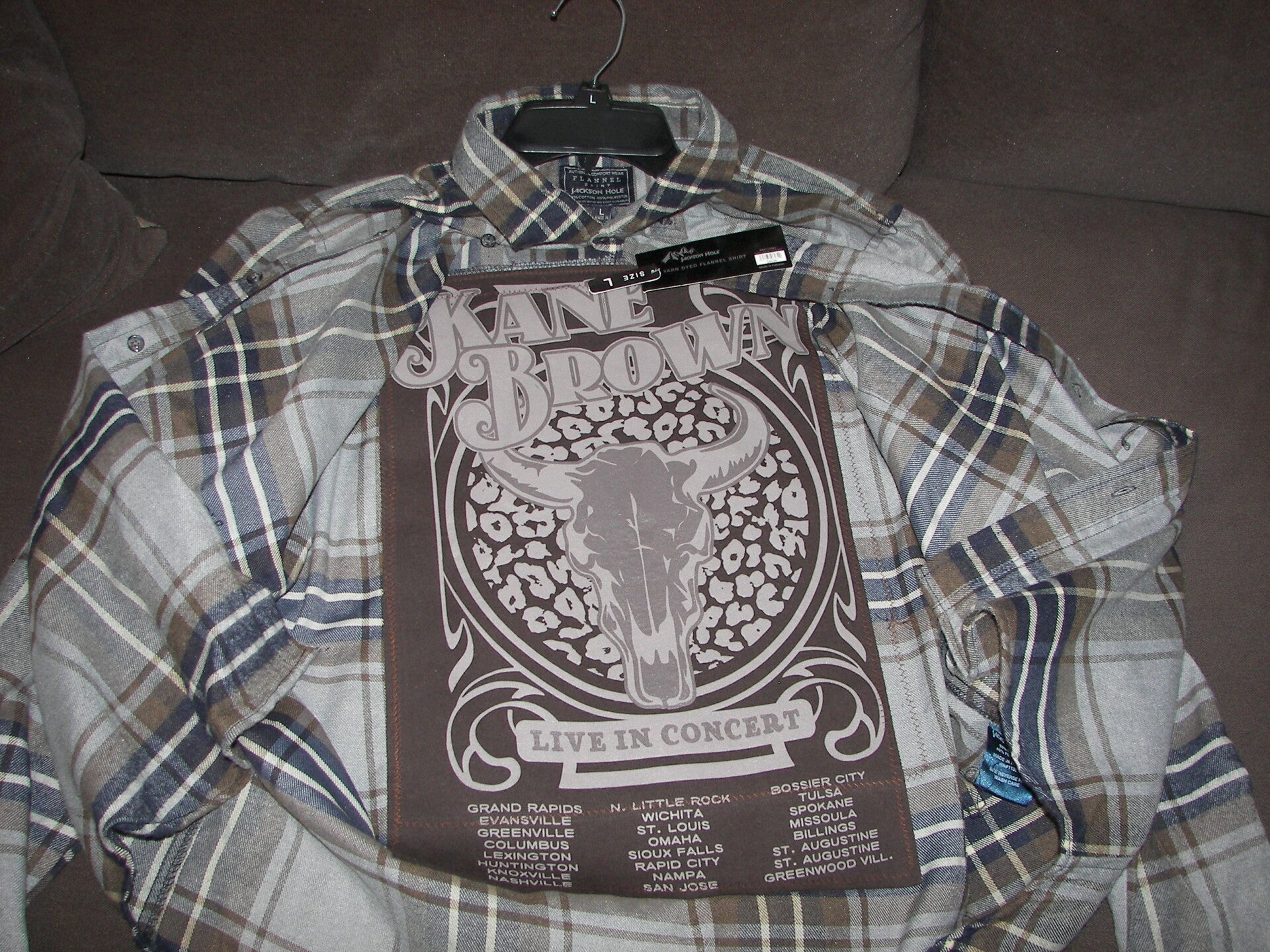Zane Brown on the back of Flannel. Size: L