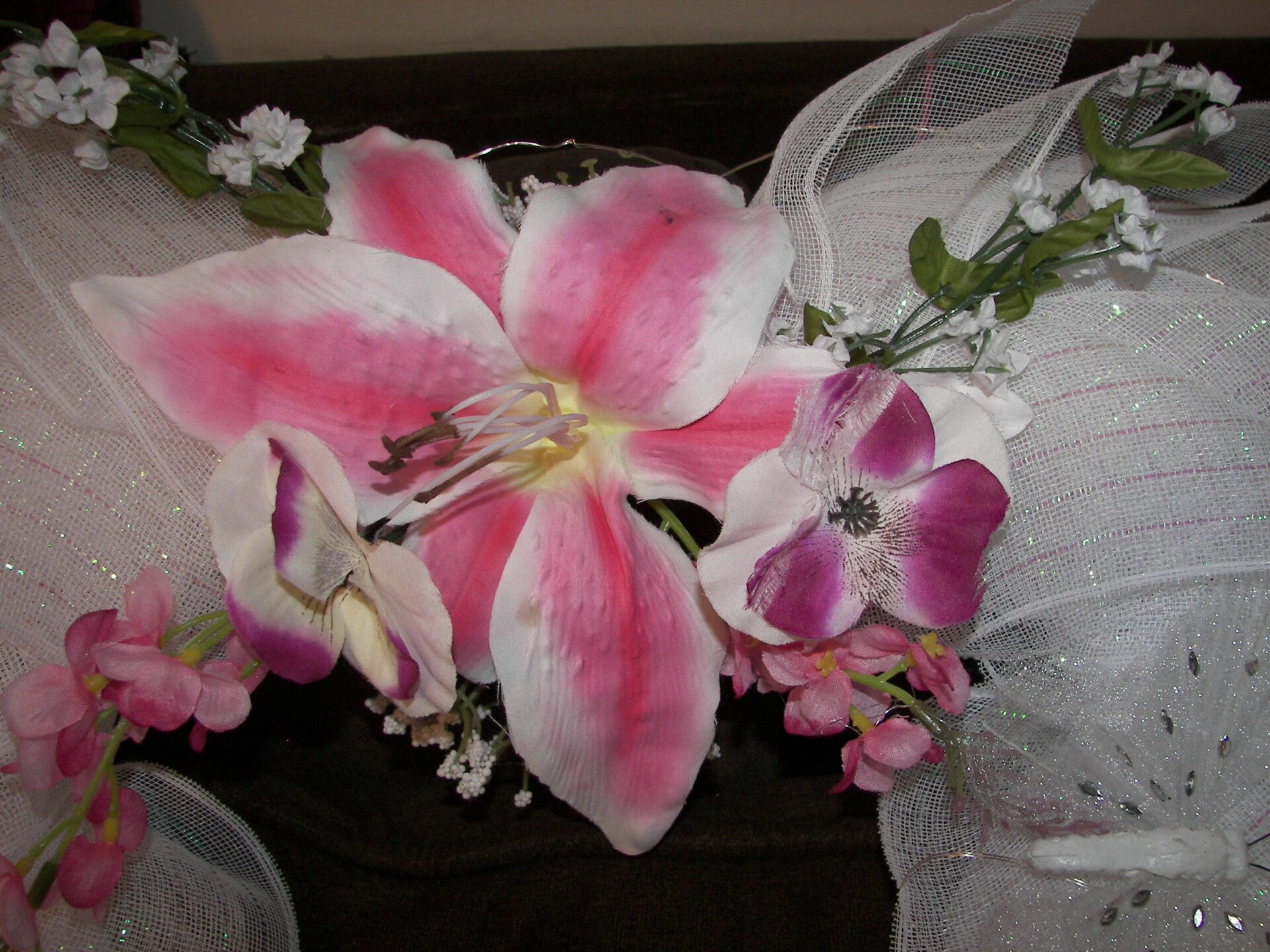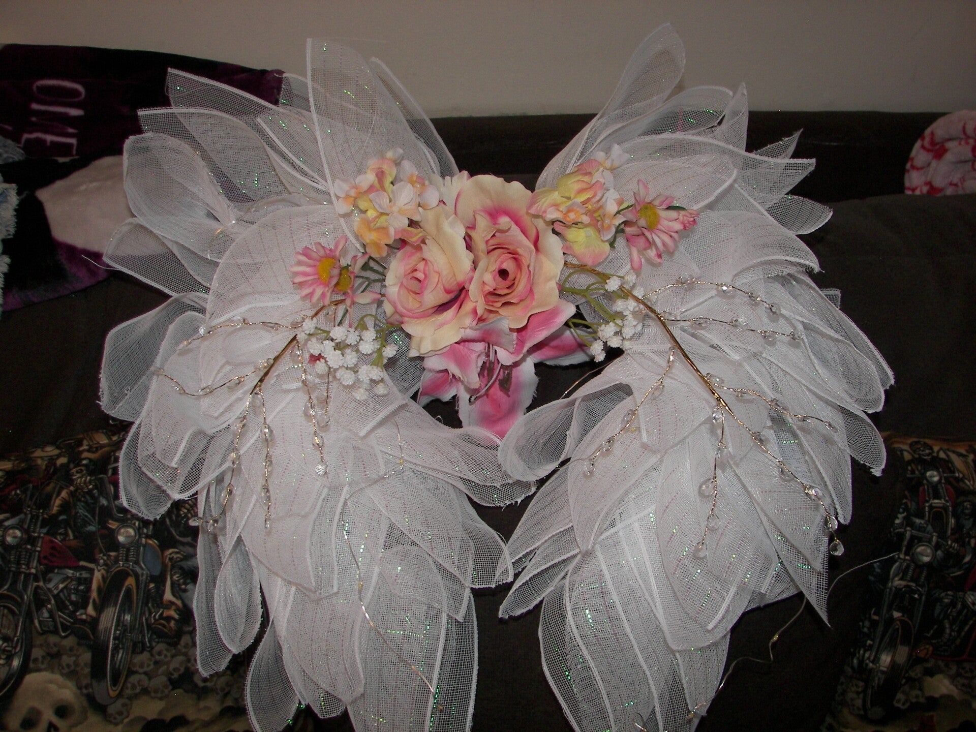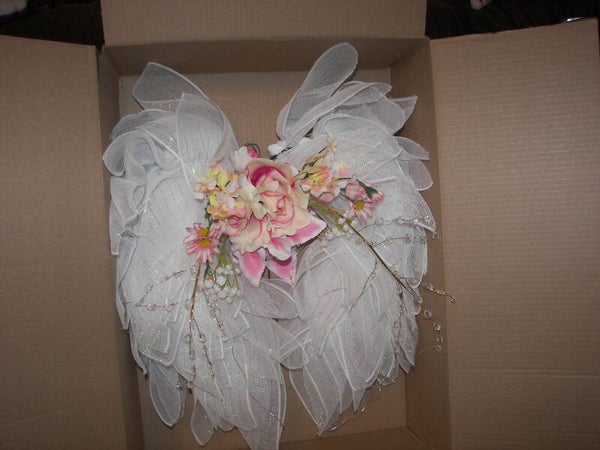 Beautiful White Angel Wreath with flowers and Lights.