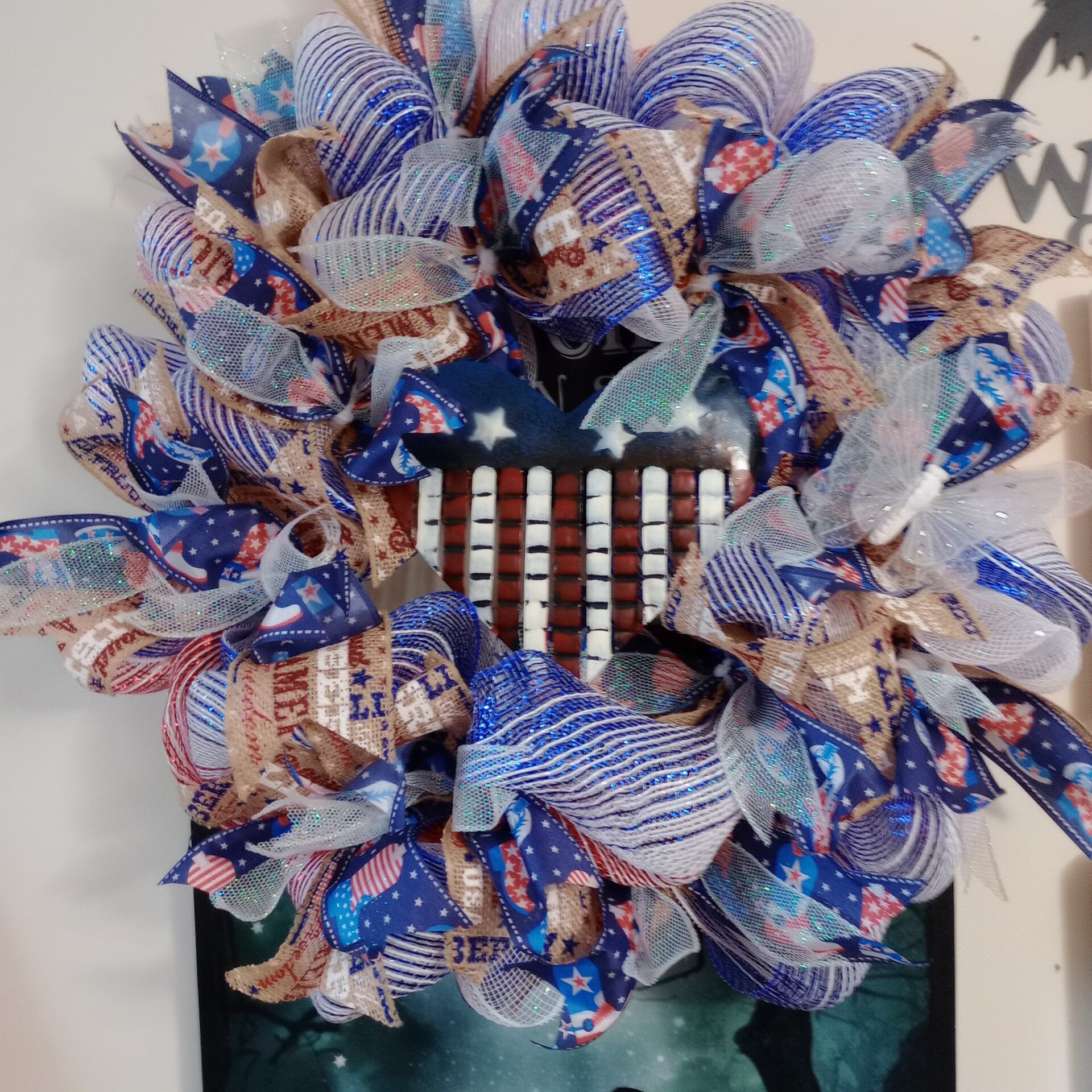 Beautiful red white and blue Wreath with Lights